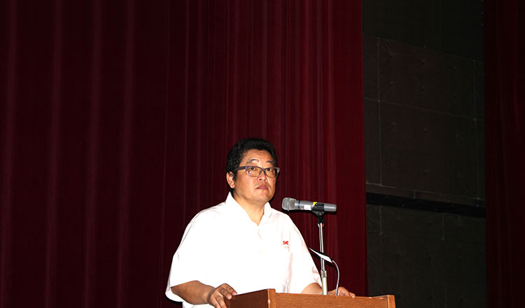 研修会は、年に一度、全社員が一堂に集う会社の一大行事で、今年も260名とたいへん多くの方々に参加して頂きました。午前の研修会では、社長訓辞、永年勤続30年などの表彰式が執り行われ、その後、各本部の活動報告が行われました。